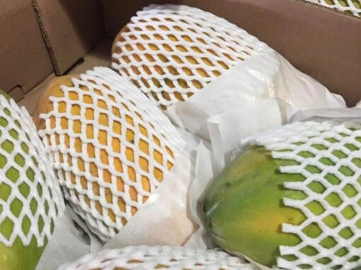 Es ideal en el empaque y transporte de frutas como papaya, cholupa, melón, manzana, pera, granadilla, entre otras; debido a que la malla ofrece una excelente resistencia a los ácidos y aceites de las frutas, una elevada absorción de energía en caso de impacto y la fruta no se talla en el proceso de transporte. Además que es muy estable y se acopla perfectamente a cualquier tipo de fruta. Está libre de clorofluorocarbonos (CFC), clorofluorocarburos halogenados (HCFC) y los fluorocarbonos halogenados (HFC), y contiene aire como gas de células.